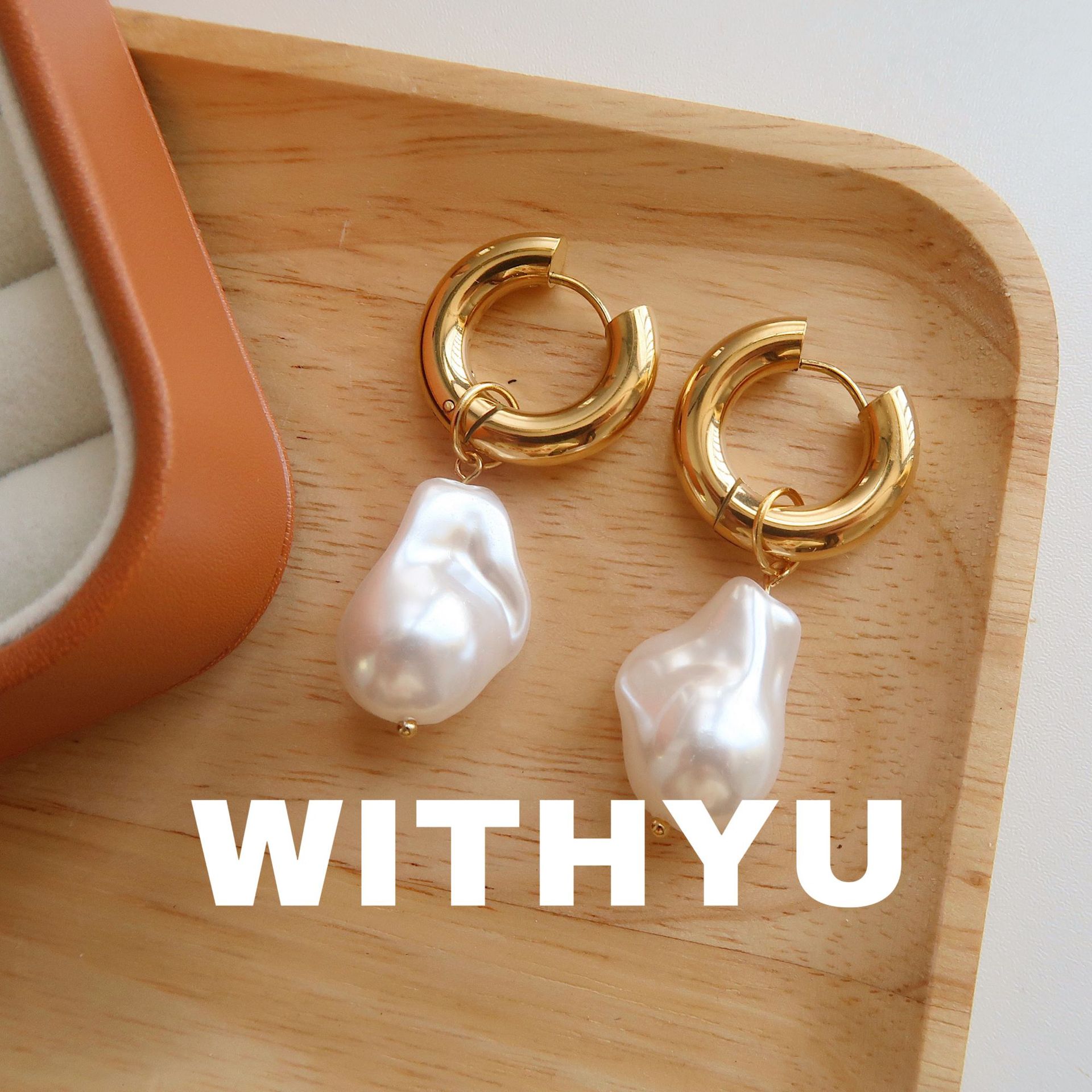 Baroque Pearl Earrings With Feminine Metal Buckle Retro Simple Temperament Mesh Red Titanium Steel Long Earrings