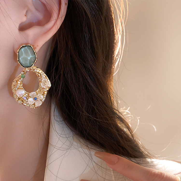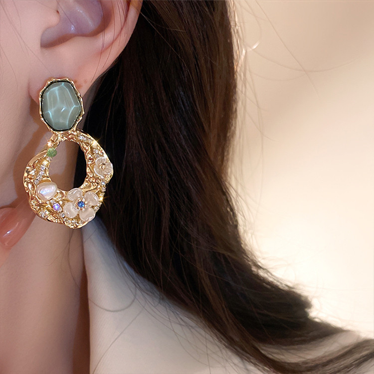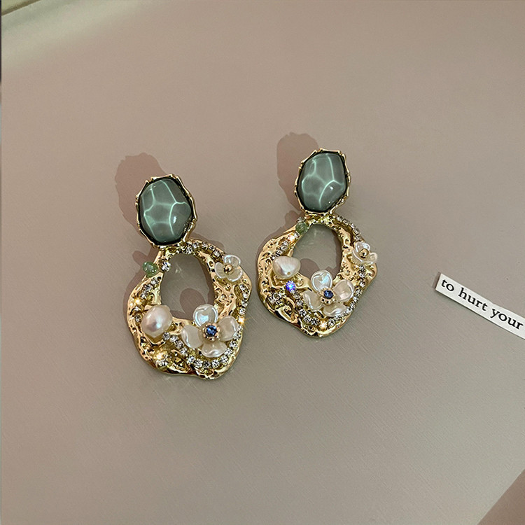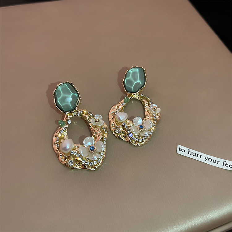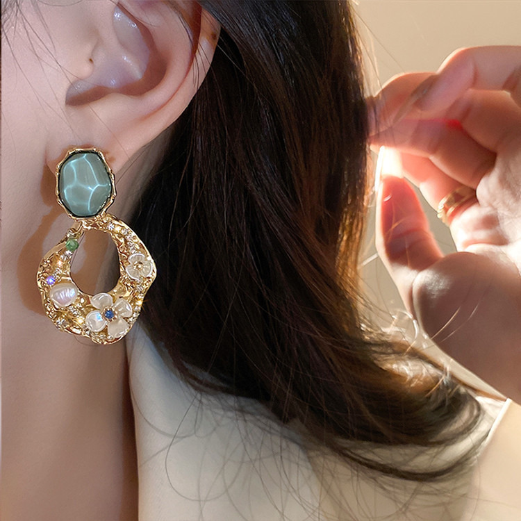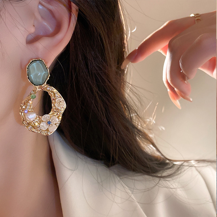 Pearl Flowers Harbor Wind Exaggerated Big Stud Earrings Women's Ancient Earrings Niche Design Sense Senior Retro Earrings Spring Summer