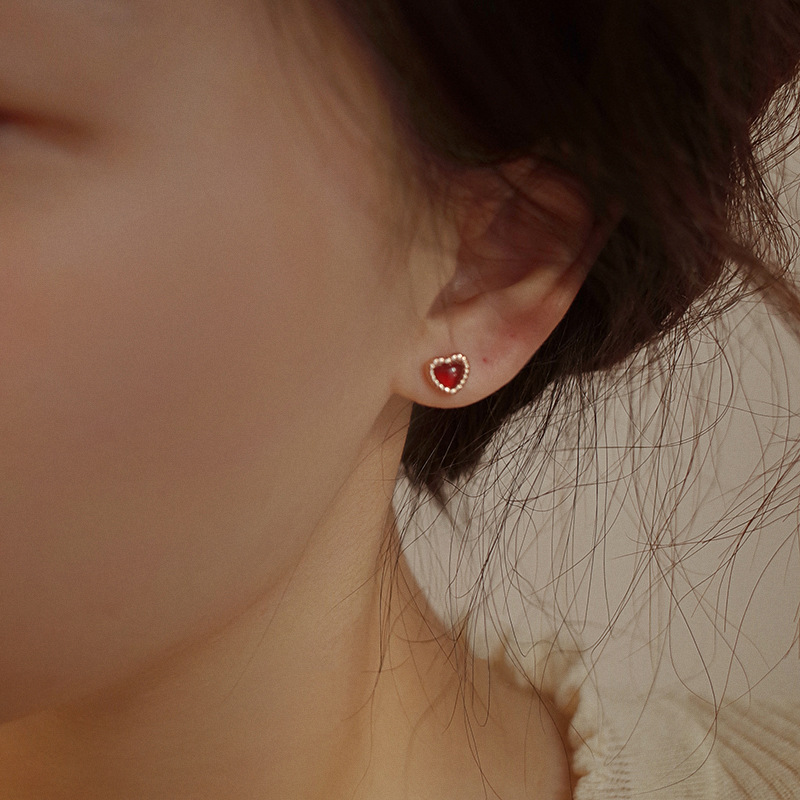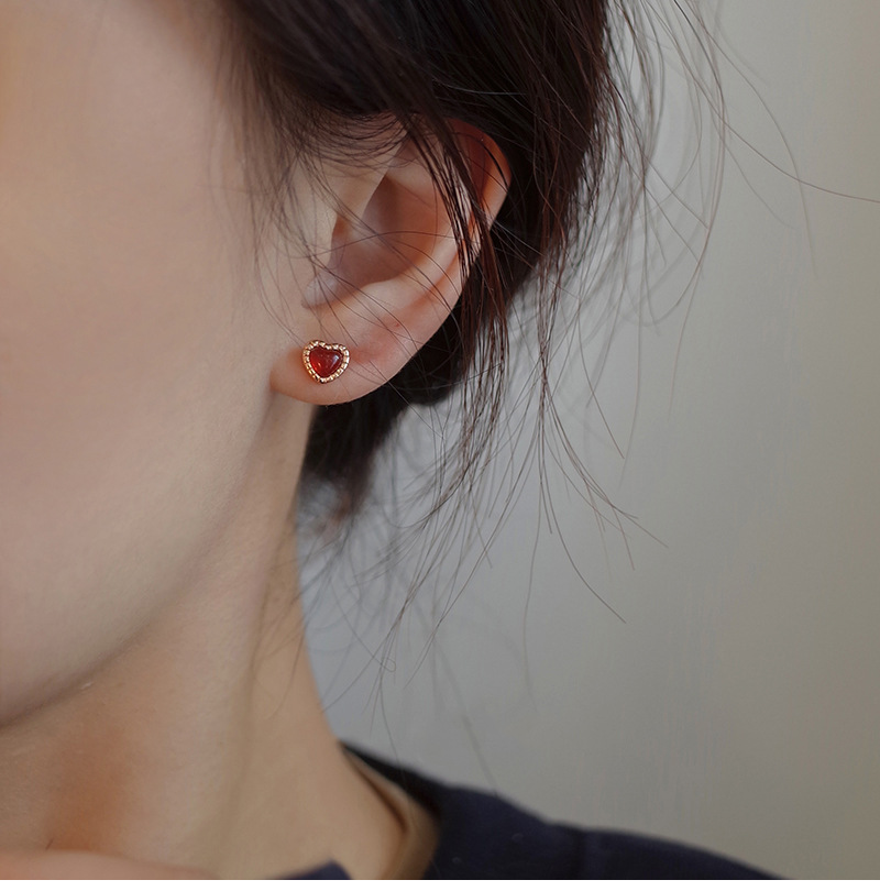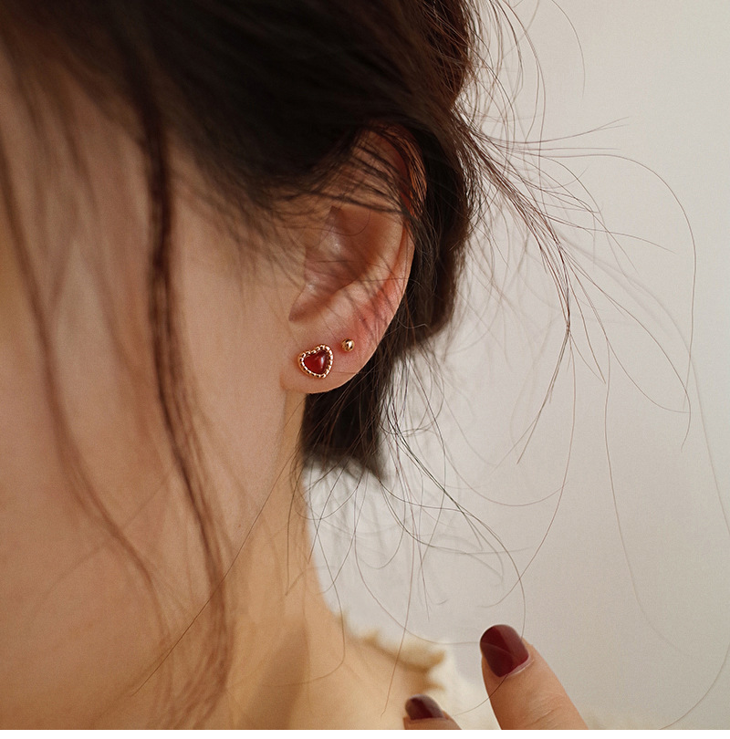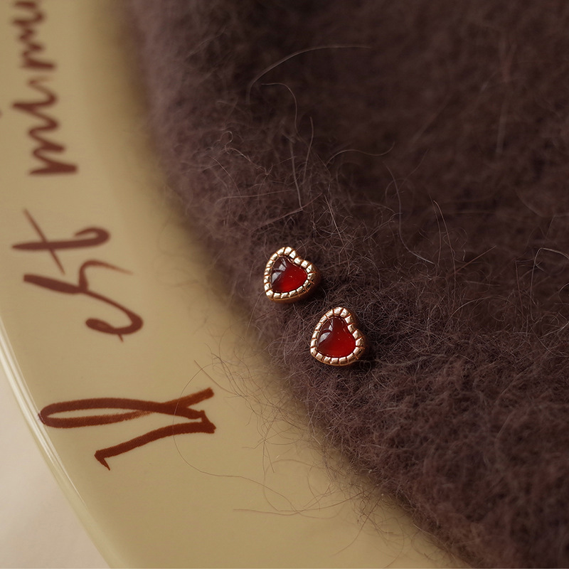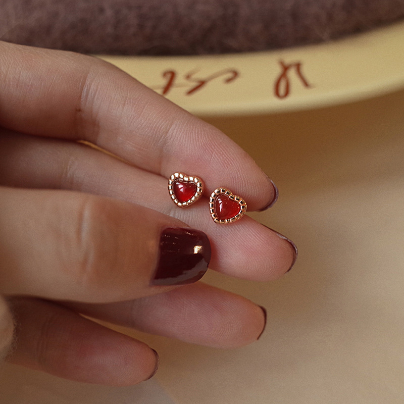 Red Love Earrings Women Simple Everything Small Red Heart Earrings Korean Version Heart Earrings 2023 Summer New