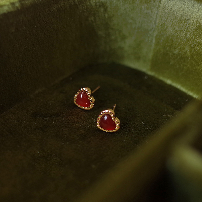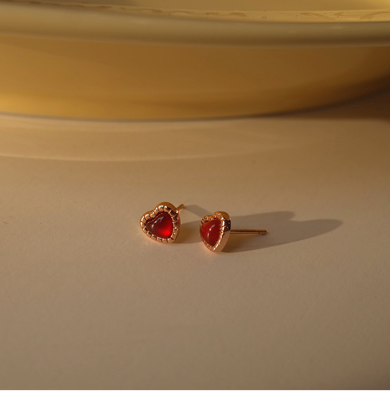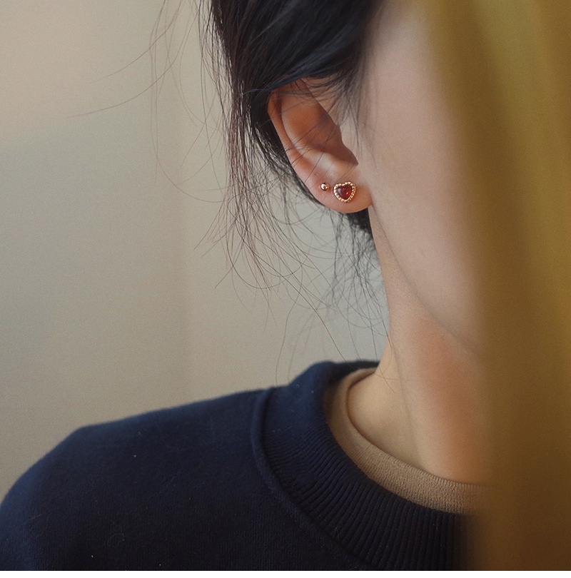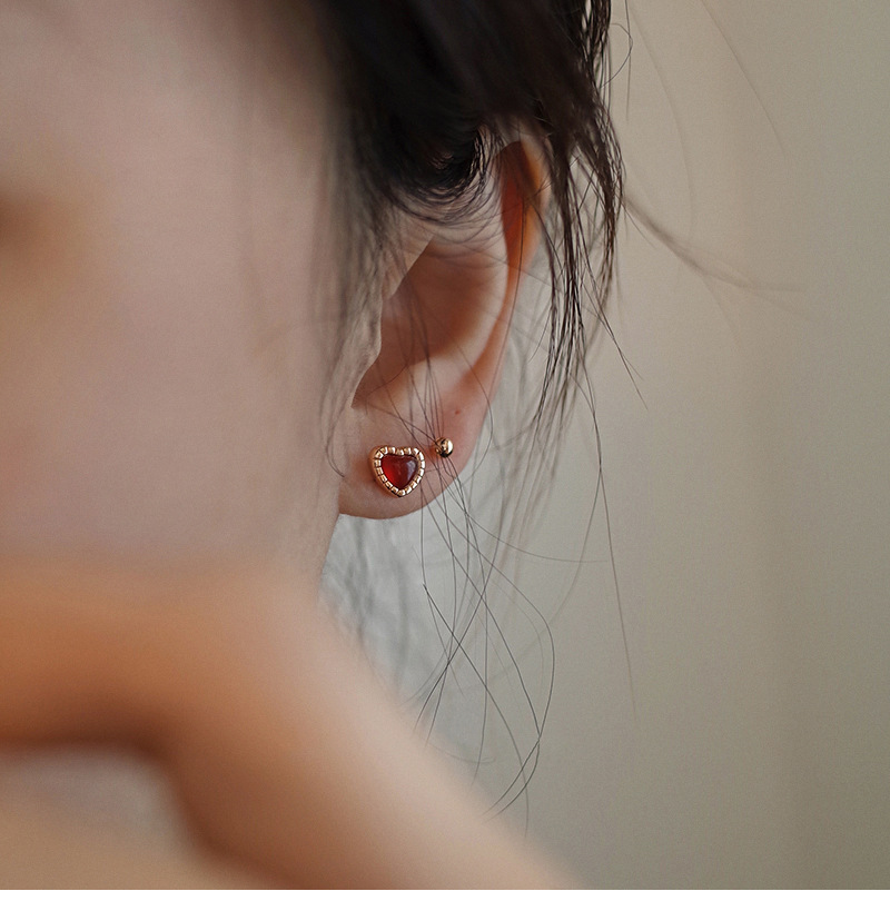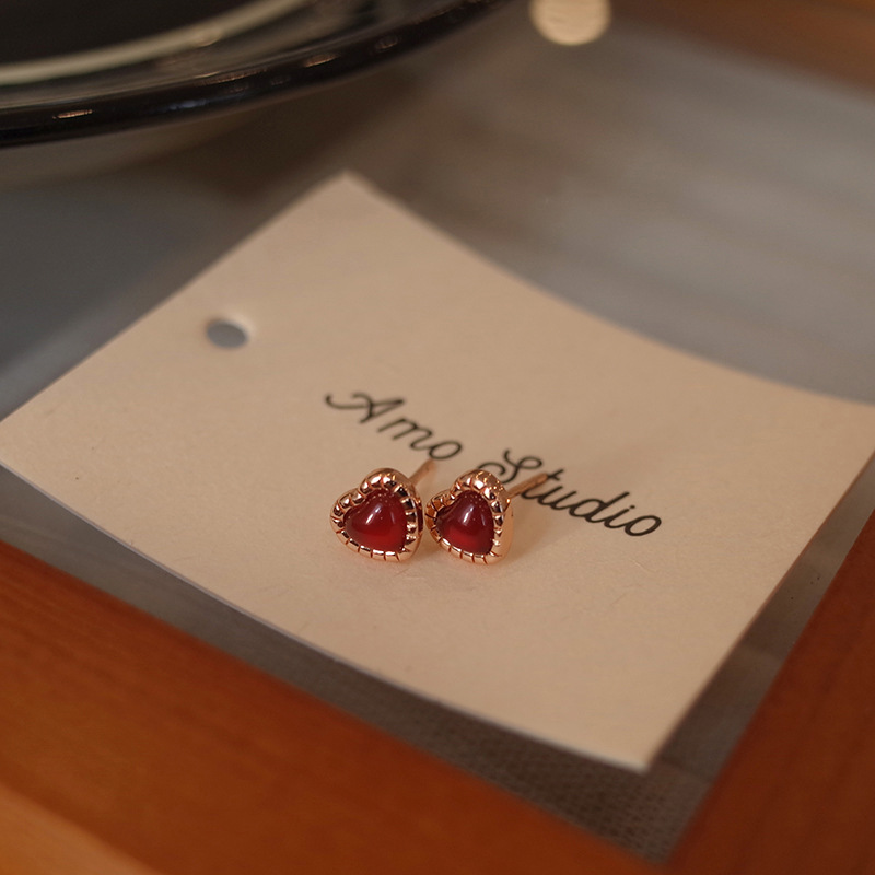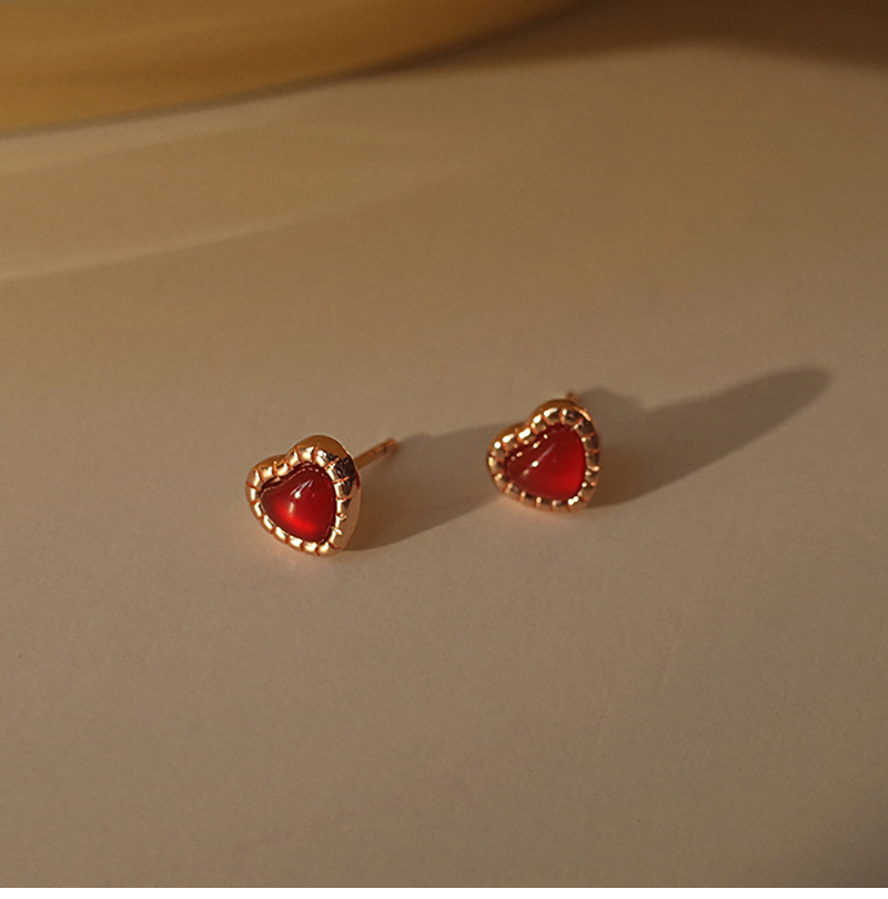 Red Love Earrings Women Simple Everything Small Red Heart Earrings Korean Version Heart Earrings 2023 Summer New